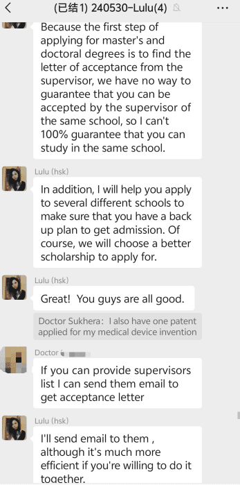 Finally, on May 9, 2025, with only 11 days left until the May 20 deadline for HITSZ's application, good news arrived. Lulu successfully made contact with Professor Ma from HITSZ, who is highly accomplished in the field of Biomedical Engineering and whose research direction is highly consistent with Sukhera's academic interests. Lulu provided Professor Ma with a detailed introduction to Sukhera's high GPA, research experience, and sense of responsibility towards his family. Professor Ma showed great interest in Sukhera and immediately agreed to offer him an interview opportunity.