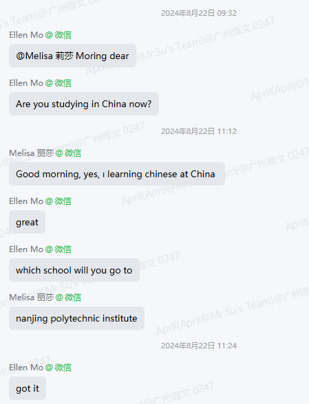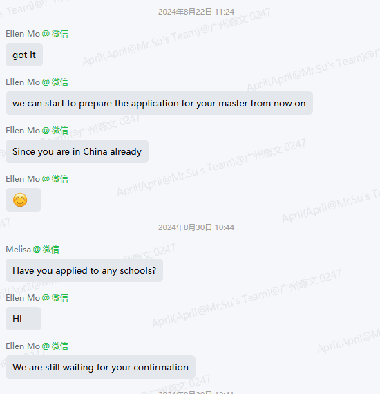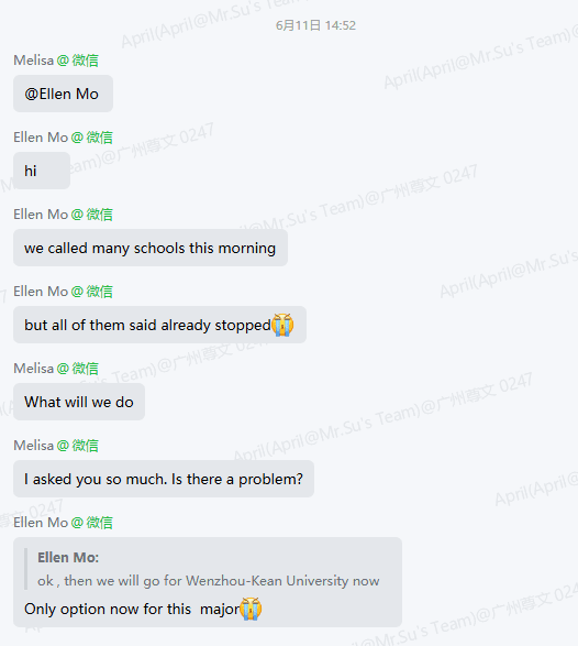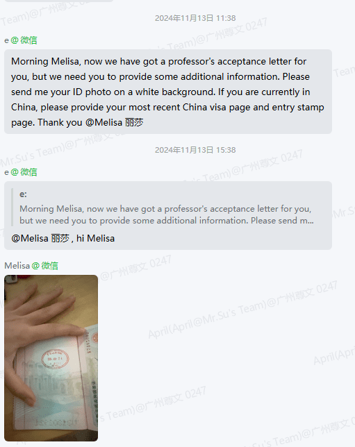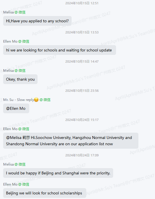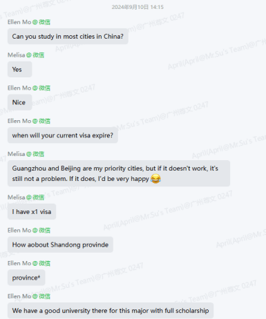 In July 2024, by chance, Melisa watched a practical video shared by Mr. Su about applying to study in China. In the video, Mr. Su's team provided accurate interpretations of the admission policies of Chinese universities, detailed explanations of application skills for different majors, and real presentations of past successful cases—all of which caught Melisa's attention. She realized that this was exactly the professional application team she had been looking for. Subsequently, Melisa took the initiative to contact Mr. Su's team. Consultant April, who was in charge of assisting her, had an in-depth communication with her promptly and then invited Ellen, a senior consultant of the company, to follow up on Melisa's application.
