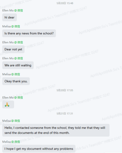 In March 2025, Southwest University officially confirmed its recommendation of Melisa for the CSC scholarship. Everyone initially thought the application would proceed smoothly, but unexpected problems soon arose. After that, there was a long delay in the progress from the university, which filled Melisa with anxiety. To keep track of the application progress in a timely manner, Mr. Su's team took the initiative to take on the communication responsibility. Consultant Ellen contacted the relevant departments of Southwest University every week through various means such as emails and phone calls to inquire about the application progress, but each time the reply received was "please be patient and wait."